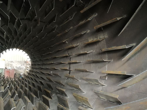 要想將干粉砂漿烘干到合理的水分,烘干機(jī)的安裝工藝和設(shè)計工藝非常重要,由于粉狀物料流動性不如固體物料,干粉砂漿烘干機(jī)的安裝需要設(shè)計一個合理的傾斜角度,能讓物料在被烘干的過程中勻速流動,這個流速需要達(dá)到剛好物料到出口處時被烘干,所以傾斜角度的設(shè)計很重要。然后是設(shè)計工藝,粉狀物料會由于重力的作用沉積,要想充分將其烘干,必須進(jìn)行打散揚(yáng)起,讓高溫氣流從物料種穿過,這就對筒體內(nèi)的設(shè)計工藝提出要求,除了安裝揚(yáng)料板,還要對排布位置,間距、密度等參數(shù)有一個合理的設(shè)計。